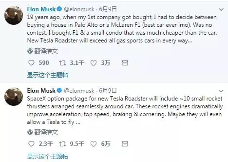 如图所示,马斯克近日在介绍和推销自家新款电动跑车Roadster时,也谈到了自己早年的买车经历。