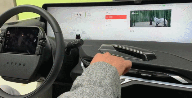 戴雷还向我们透露,这块48英寸的全面屏,是耗时两年多时间与京东方合作打造成车规标准。并且,方向盘及驾驶员触控屏也花了两年多时间开发。在量产版的车型上,还增加了前排中间位置的副驾驶触控屏。
