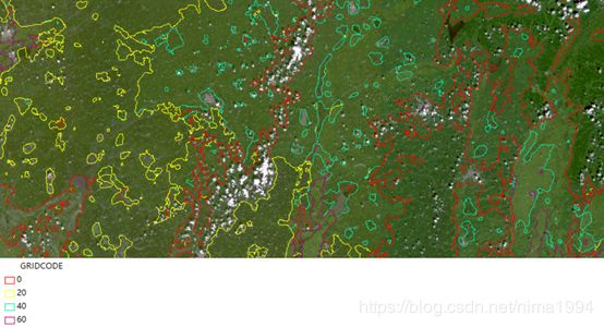实验仅仅使用ArcGIS提供的“空间分析工具-邻域分析-焦点统计”,统计类型为众数。