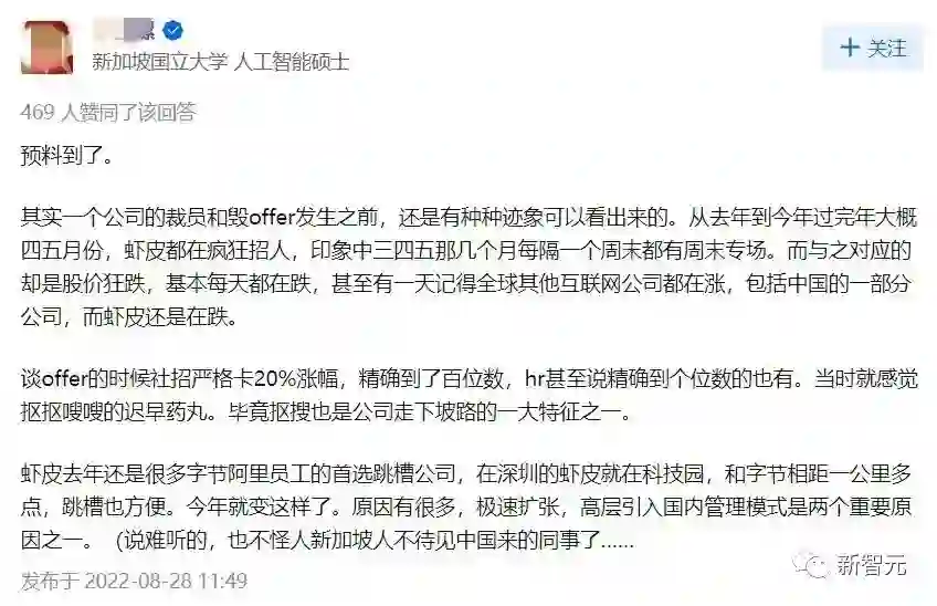 对虾皮社招内幕了解颇深的知友「小星螺」 表示自己早料到虾皮大量毁约的这一天。