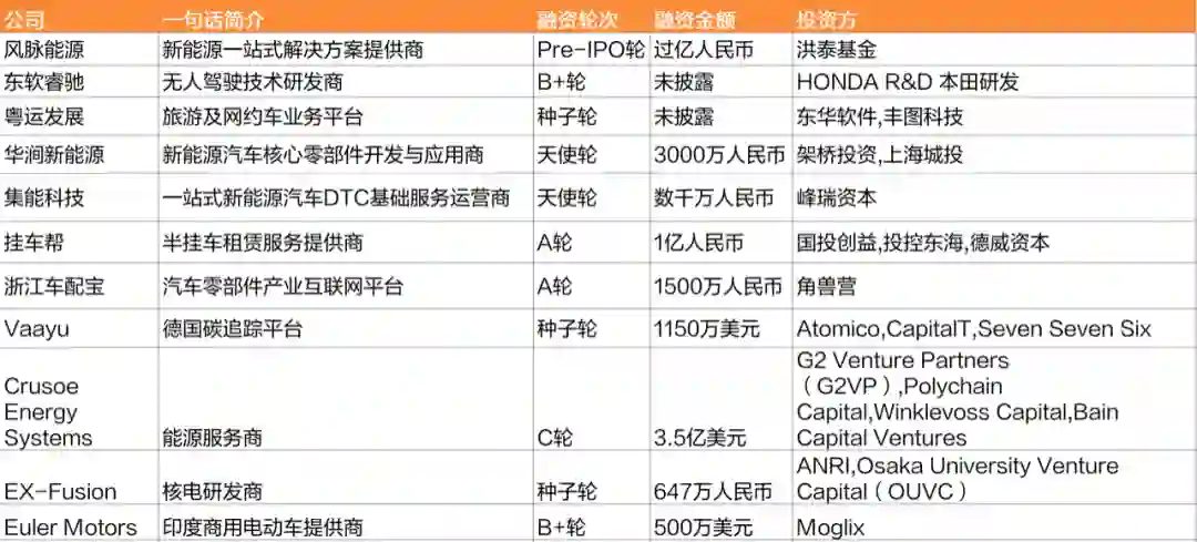 本周全球汽车交通领域融资事件共11起,其中国内7起,国外4起。据睿兽分析不完全统计,本周国内汽车交通融资金额总计超1.45亿元人民币,海外融资金额总计超3.7亿美元。