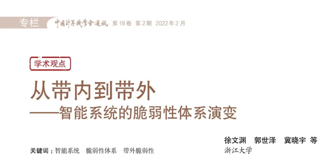 随着人工智能、物联网等技术的发展,智能系统如智能机器人、自动驾驶等不但改变了人们的日常生活,还给工业生产、智能制造、国防军工等行业带来了革命性的变革。然而,随着智能系统不断应用于涉及国家安全的关键基础设施,其安全性变得尤为重要。安全问题存在的根本原因是系统的脆弱性,即系统设计、实现和使用过程中可被利用进而产生安全危害的各类缺陷,发现并防护脆弱性是保障系统安全的基础,也是网络与信息安全研究的重点。