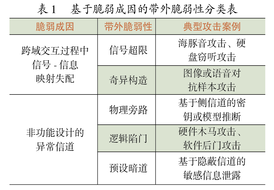 智能时代的系统安全研究范式需要从“带内”向“带内带外兼顾”转变,必须补足带外脆弱性理论体系研究的短板,加快其检测、分析、防御方法的技术突破。