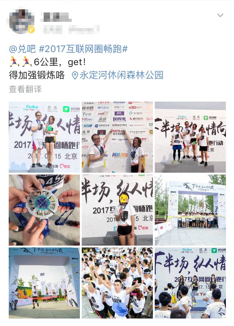 同时,兑吧联手最大跑步平台悦动圈进行线上的畅跑活动。悦动圈平台从7月15日开始以企业为单位进行报名,同公司还可以内部定向邀请,通过各大战区进行团队PK,激起下半场互联网企业的斗志,敢于拼搏,纵情向前。目前活动已吸引了包括百度、京东、小米、360等5000家互联网公司报名,8万人参与,持续提升话题度,拉高参与感。
