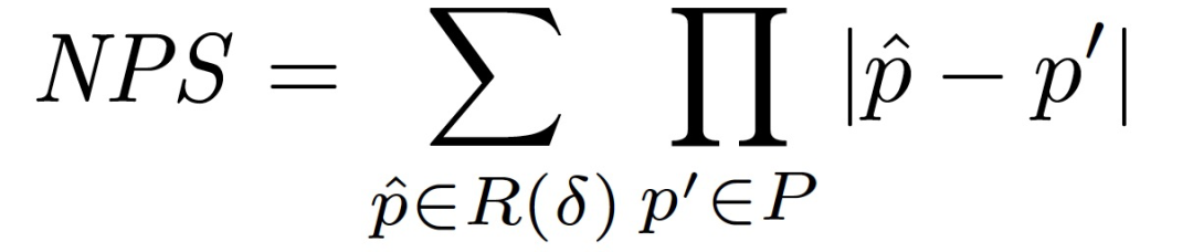 考虑到在实际应用中会存在制造误差,作者在目标函数中增加了一个额外的项,该项用来模拟打印机的颜色复制误差。给定一组可打印的颜色(RGB 三元组)P 和一组在扰动中使用的、需要在物理世界中打印出来的(唯一的)RGB 三元组 R(δ),利用下式计算不可打印性得分 non-printability score (NPS):