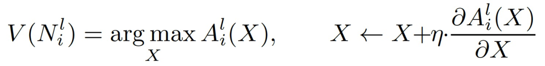 其中,(A_i)^l(X)为输入图像 X 的(N_i)^l 的激活,(A_i)^l 表征第 l 层的第 i 个神经元对应的激活,(N_i)^l 为第 l 层的第 i 个神经元,η为梯度下降步长。