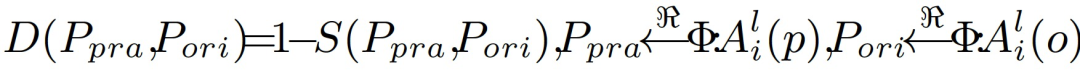 其中,P_pra 和 P_ori 分别代表来自对抗性输入和原始输入的输入模式(input patterns)。Φ:(A_i)^l(p)和Φ:(A_i)^l(o)分别表征由对抗性补丁和原始输入产生的神经元激活的集合。R 将神经元的激活映射到主要的局部输入模式。S 代表相似性指标。