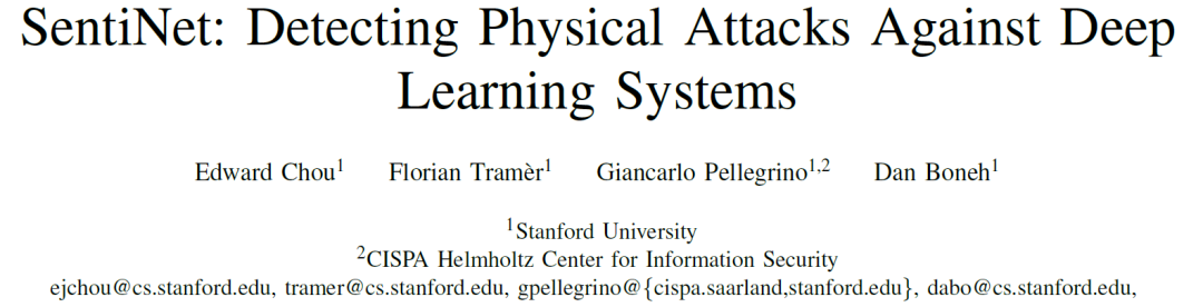 3、SentiNet:针对深度学习系统的物理攻击检测[3]