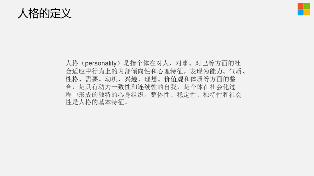 上图是从百度百科中摘取的一段关于人格化的定义,简单来讲,就是人格化的Chatbot。这里我们能够通过技术手段可以实现的是能力、性格、兴趣、一致性、连续性,对Chatbot实现人格化,提供了很好的借鉴方向。