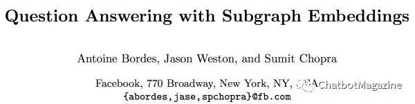 本期我们将介绍 KB-QA 传统方法之一的向量建模(Vector Modeling),我们以一个该方法的经典代表作为例,为大家进一步揭开知识库问答的面纱。该方法来自 Facebook 公司 Bordes A, Chopra S, Weston J 的论文 Question answering with subgraph embeddings(文章发表于 2014 年的 EMNLP 会议)。