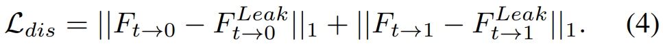由于无法获取中间图像并缺少监督,中间流难以进行直接近似。为了解决这个问题,研究者在 IFNet 中添加了一个 leakage distillation 损失,其目的是为了预测出一个能够获取中间帧的 overpowered 教师网络。这个 leakage distillation 损失的定义如下: