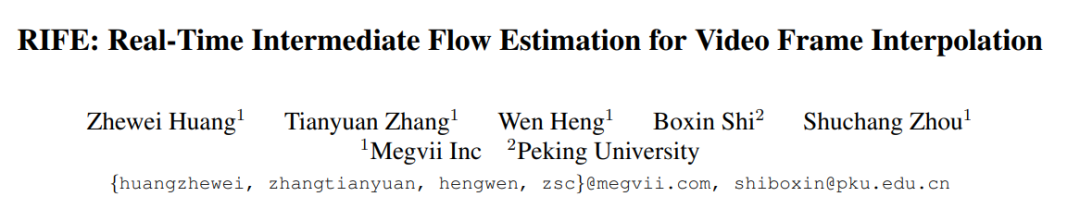 大多数现有方法首先估算双向光流,然后将它们线性组合成近似中间流,从而会导致运动边界周围出现伪影。在一篇论文中,旷视科技和北京大学的研究者为视频帧插值(VFI)提出了一种实时中间流估计算法(real-time intermediate flow estimation, RIFE)。