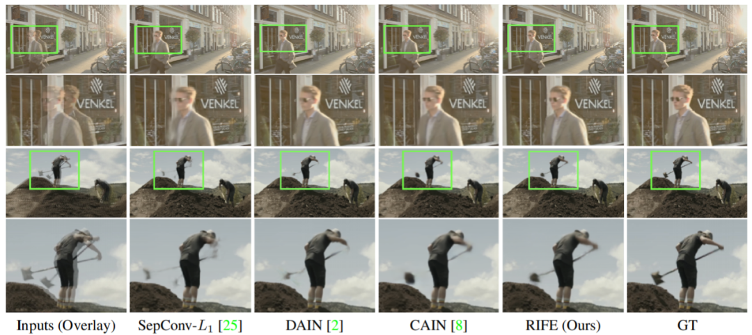 图 5:在 Vimeo90K 测试集上的定性对比结果。