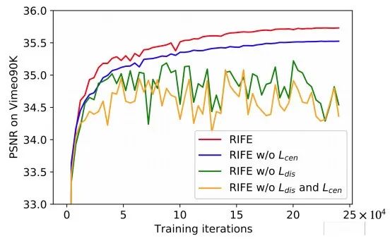 图 7:在 Vimeo90K 测试集上,每 5 个训练时(epoch)对本文所提出的模型进行评估。
