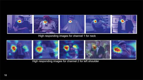 比如,我们在实验中发现,有一个神经元会对头偏向左侧这一特征有一个高的响应。而另外一个神经元可能会对于手遮住肩膀这样一个视觉信息有一个高的响应。虽然标签或者输出中并没有提供这些视觉信息,然而通过算法学习得到的特征却可以提供这些信息。