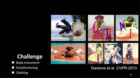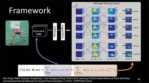 同时在人体姿态估计过程中,还可以结合人体的结构化信息,这些结构化信息来自于我们的骨骼。比如人的头、手不能离身体太远,不然的话,真不知道会发生什么样的事情。