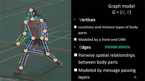 因此,我们可以为身体的各个部位定义它自己所特有的特征。有了各部位特有的特征以后,信息就可以在这些特有的特征之间进行信息传递。我们可以把手的特征传递到头部,也可以把头部的特征传递到手臂,从而实现一个结构化的信息传递。而这种特征层级之间的信息传递,使得特征得到更好的预测,进而更好地预测最终结果。