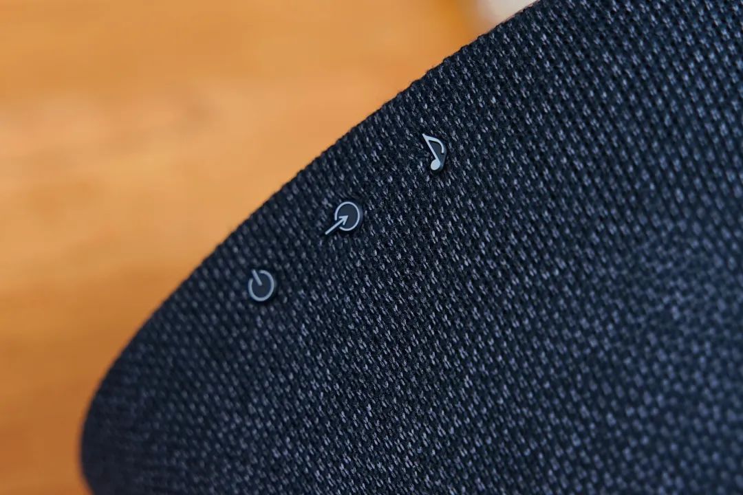 实现充满房间的环绕声的秘密,得归功于机身内拥有的 7 个发声单元,分别是顶部 3 个 46mm 全频扬声器,侧面 3 个 46mm 全频扬声器以及 1 个 70mm 低频单元,底部还有留有低音开孔。