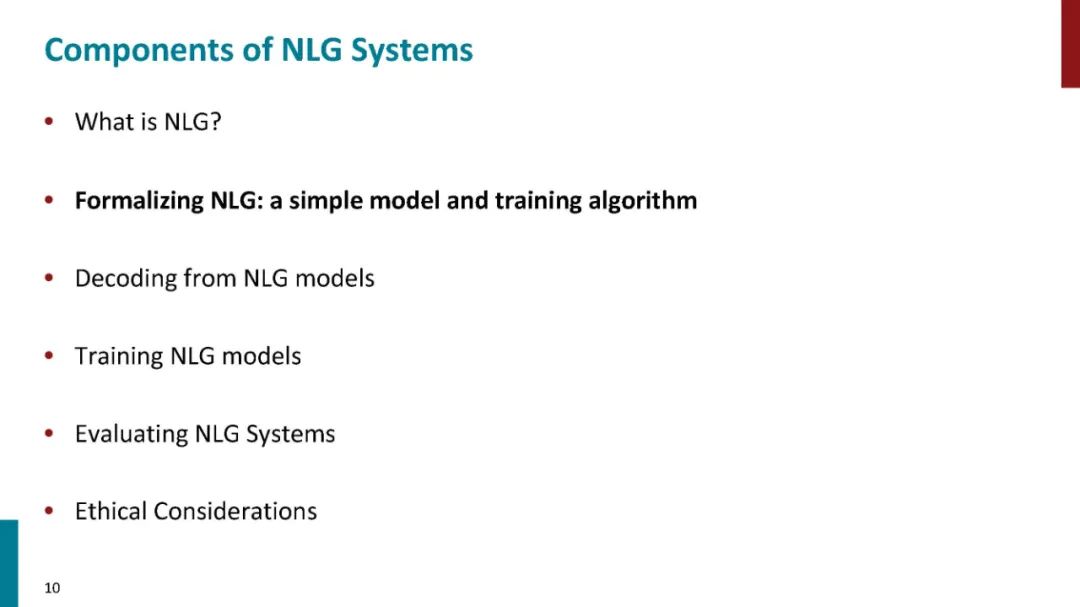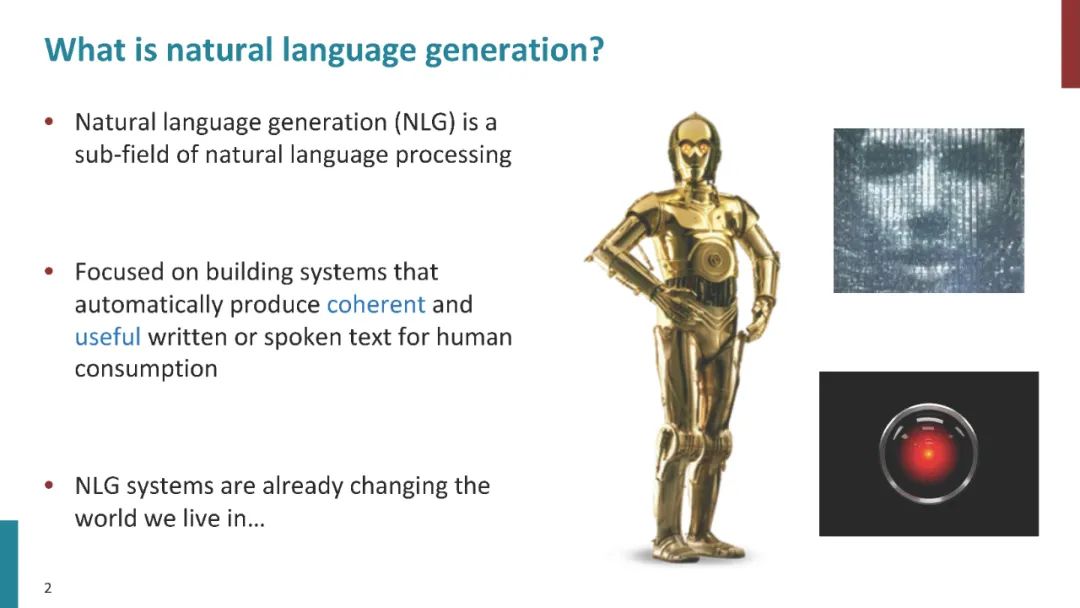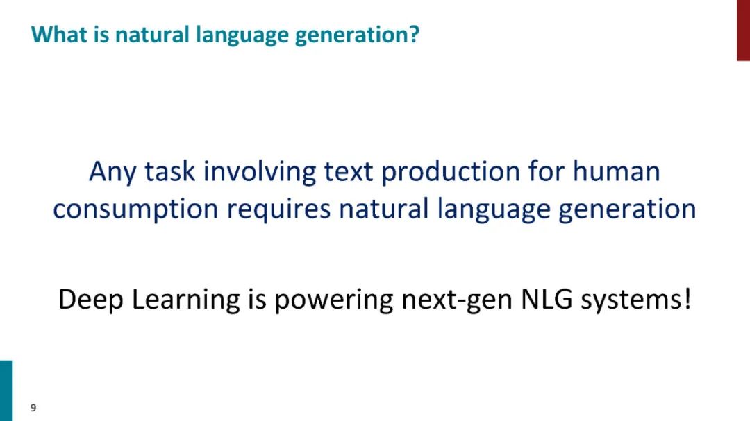 • 自然语言生成(NLG)是自然语言处理的一个子领域