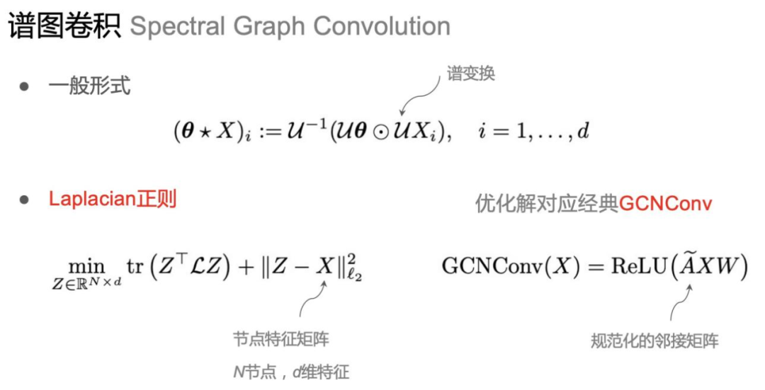 图神经网络特征提取模块可以写成图卷积的模式,与传统的 CNN 卷积类似,只不过在图上定义卷积不如 CNN 直观,不能用空间域窗口的方式平移得到,但是可以仿照傅里叶卷积的模式,定义图卷积的模块。这种卷积被证明和传统 CNN 具有相似的特征提取功能,共享了参数,并保持了重要的图结构性质,从而在图神经网络的学习中起到了很好的特征提取作用。其中一个很重要的模块是由谱图神经网络衍生出来的经典 GCN 模型,如果写成谱图的形式就是 Laplacian 正则化的过程。
