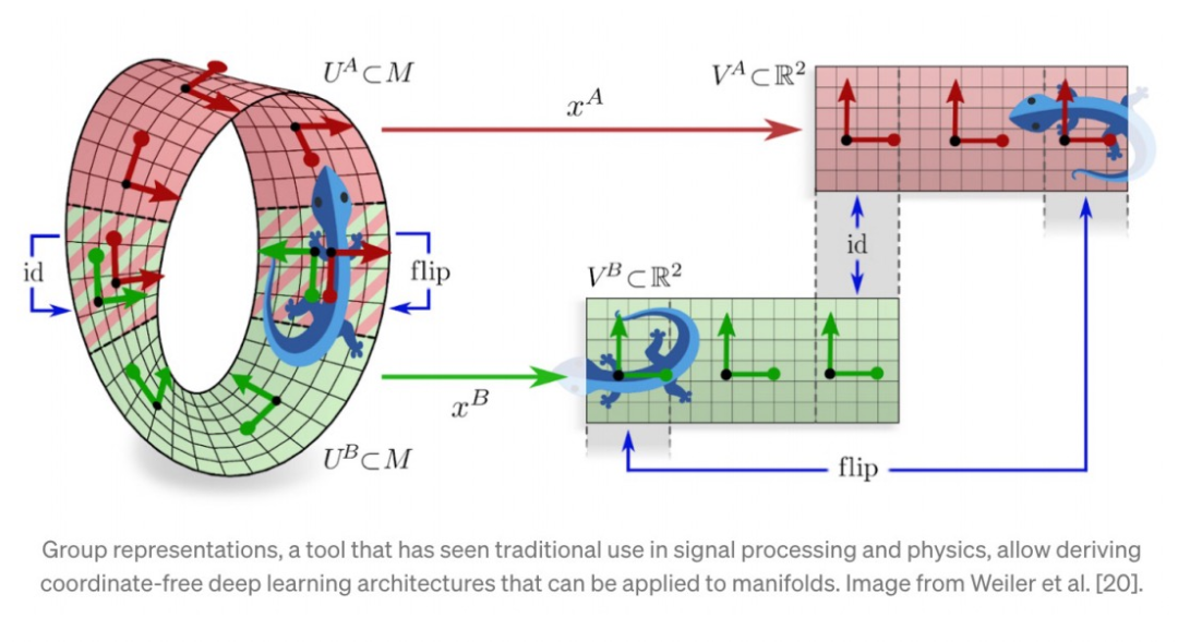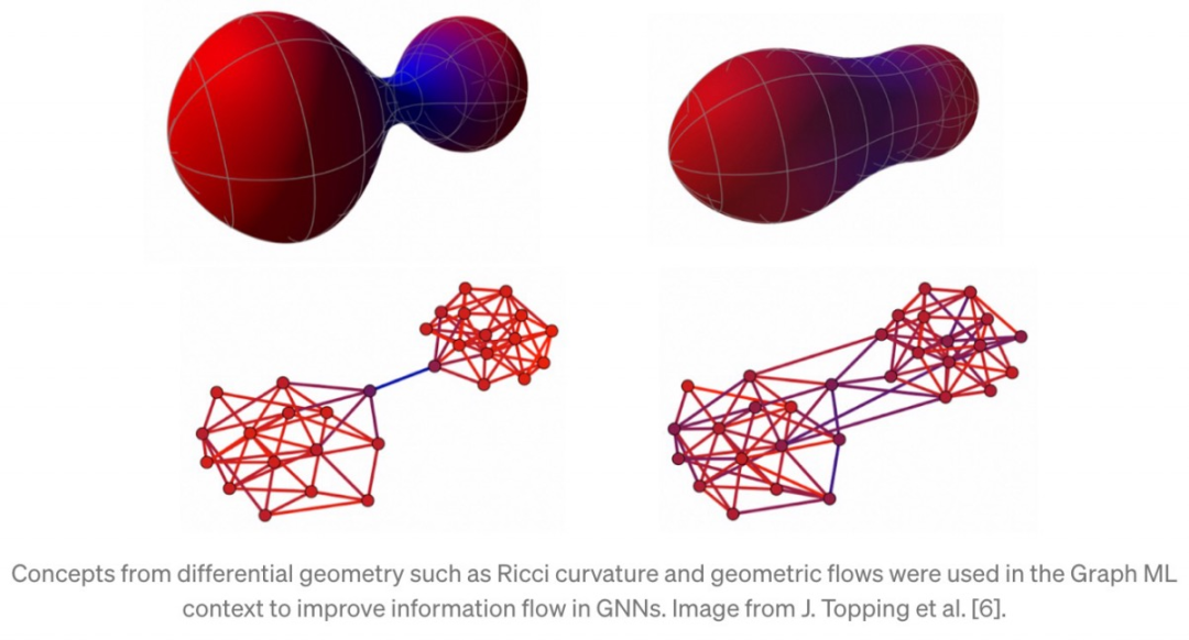 首先,图神经网络原来是一个图结构数据,是一种离散化的结构,但是数学工具往往是坐落在连续空间上的,所以近来大家考虑将微分几何的一些方法引入到 GNN 中,包括新型等变 GNN 的架构,利用对称性等工具,以更好地理解和利用深度学习模型中图结构性质的不确定性。
