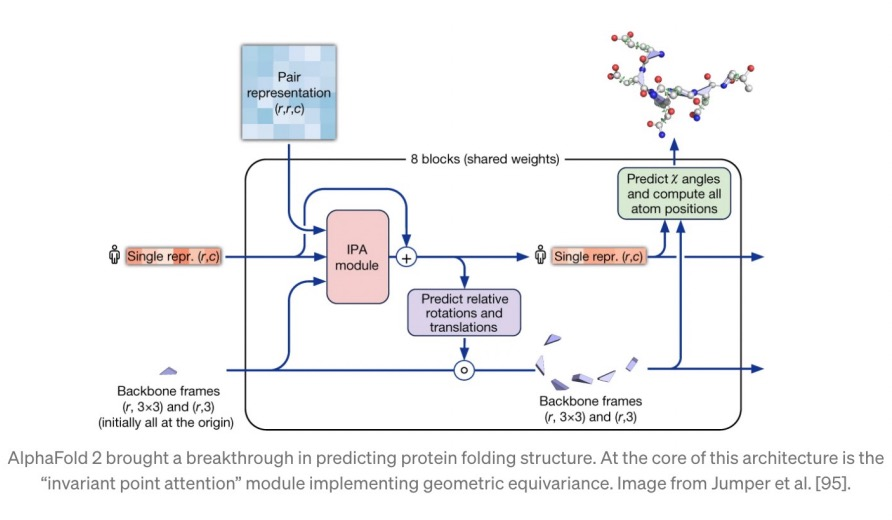 几何深度学习实际上是这几年才发展起来的,特别是从 2021 年开始大家才广泛关注几何深度学习和图神经网络,因为 2021 年 AlphaFold 实现了对蛋白质结构的准确预测,准确率可以达到 95% 以上。这样高精度而且非常快速的预测工具,是基于一些几何深度学习的模块。这项工作被 Science 评为 2021 年十大科学进展之最。图神经网络广泛应用于其他领域,例如它对一些数学定理的证明或发现起到了很好的作用,特别是去年发表在 Nature 上的一个用 GNN 辅助科学证明的算法,由 DeepMind 与几位科学家合作完成,引起了数学圈很大的轰动。
