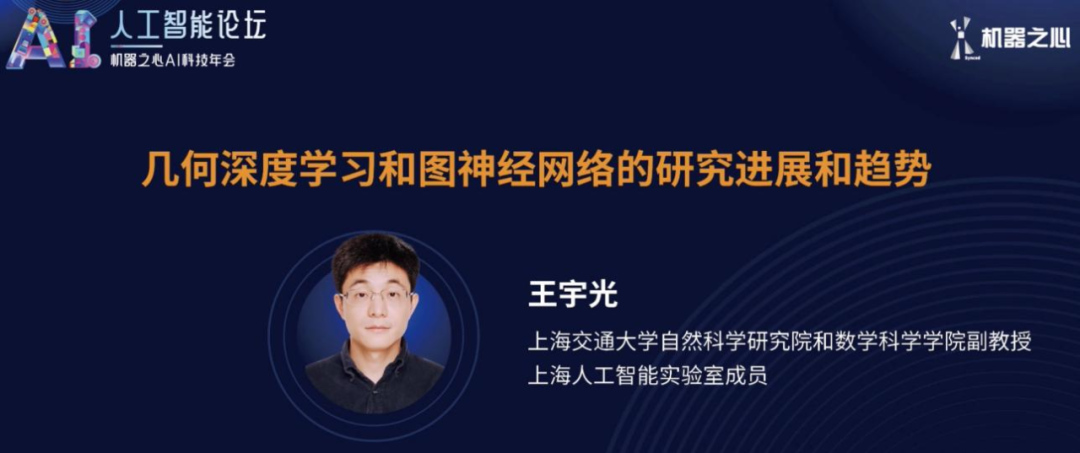 3 月 23 日,在机器之心 AI 科技年会上,上海交通大学自然科学研究院和数学科学学院副教授、上海人工智能实验室成员王宇光老师发表了主题演讲《几何深度学习和图神经网络的研究进展和趋势》。