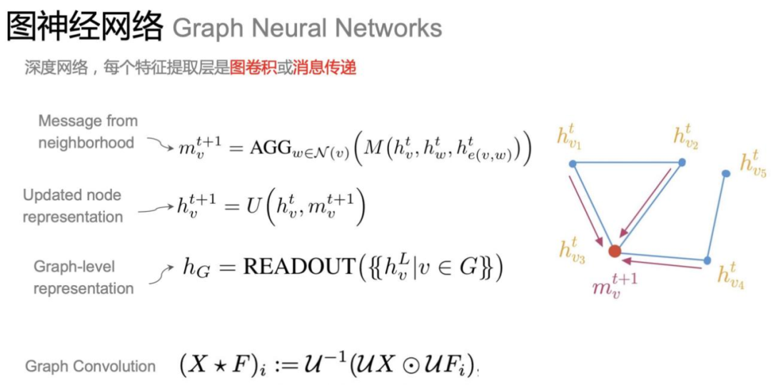 图神经网络是几何深度学习的一部分,研究具有结构属性、拓扑性质的数据的学习和预测任务。图神经网络的每一个特征提取层都会对节点的特征和连接的特征进行更新,这种更新模式被叫作消息传递模式。