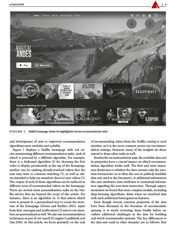 在本文中,我们首先概述了Netflix服务上的各种个性化任务,并重点介绍了Netflix服务上的电影和电视节目的个性化排名这一关键任务。然后,我们将讨论在Netflix等推荐设置中可用的数据的几个特定属性,以及它们在创建推荐算法时带来的实际挑战。通过推荐的视角观察深度学习,我们可以研究Netflix不同推荐任务的各种模型。由此,我们将分享对几个重要类型的模型的见解。首先,我们讨论使用会员观看视频集的物品袋模型。虽然功能强大,但这些模型忽略了时间信息,因此我们随后将讨论解决这一缺陷的序列序模型。我们发现这两种方法对于不同的任务都很有价值。经过深度学习方法最初的挣扎,我们的实验表明,当我们为深度学习算法提供额外的异质特征和信息源时,它在推荐问题上开始特别有效。相比之下,其他模型在仅使用用户-项目交互数据的经典推荐设置中仍然具有竞争力(这是文献中经常出现的情况,参见Ferrari Dacrema、Cremonesi和Jannach(2019)),当这些方法被适当调整时。然而,这种深度学习模型的灵活性允许我们找到这样的场景:我们可以构建在历史数据上评估的离线指标中获得巨大改进的模型。