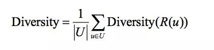 而推荐系统的整体多样性可以定义为所有用户推荐列表多样性的平均值: