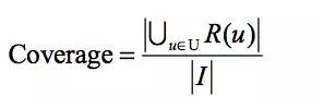 覆盖率(coverage)描述一个推荐系统对物品长尾的发掘能力。覆盖率有不同的定义方法,最简单的定义为推荐系统能够推荐出来的物品占总物品集合的比例。假设系统的用户集合为U,推荐系统给每个用户推荐一个长度为N的物品列表R(u)。那么推荐系统的覆盖率可以通过下面的公式计算: