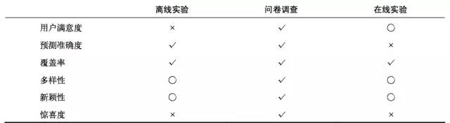 推荐系统中,主要有3种评测推荐效果的实验方法,即离线实验(offline experiment)、用户调查(user study)和在线实验(online experiment)。