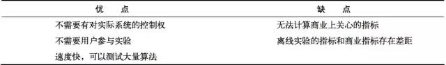 从上面的步骤可以看到,推荐系统的离线实验都是在数据集上完成的,也就是说它不需要一个实际的系统来供它实验,而只要有一个从实际系统日志中提取的数据集即可。这种实验方法的 好处是不需要真实用户参与,可以直接快速地计算出来,从而方便、快速地测试大量不同的算法。它的主要缺点是无法获得很多商业上关注的指标,如点击率、转化率等,而找到和商业指标非常相关的离线指标也是很困难的事情。