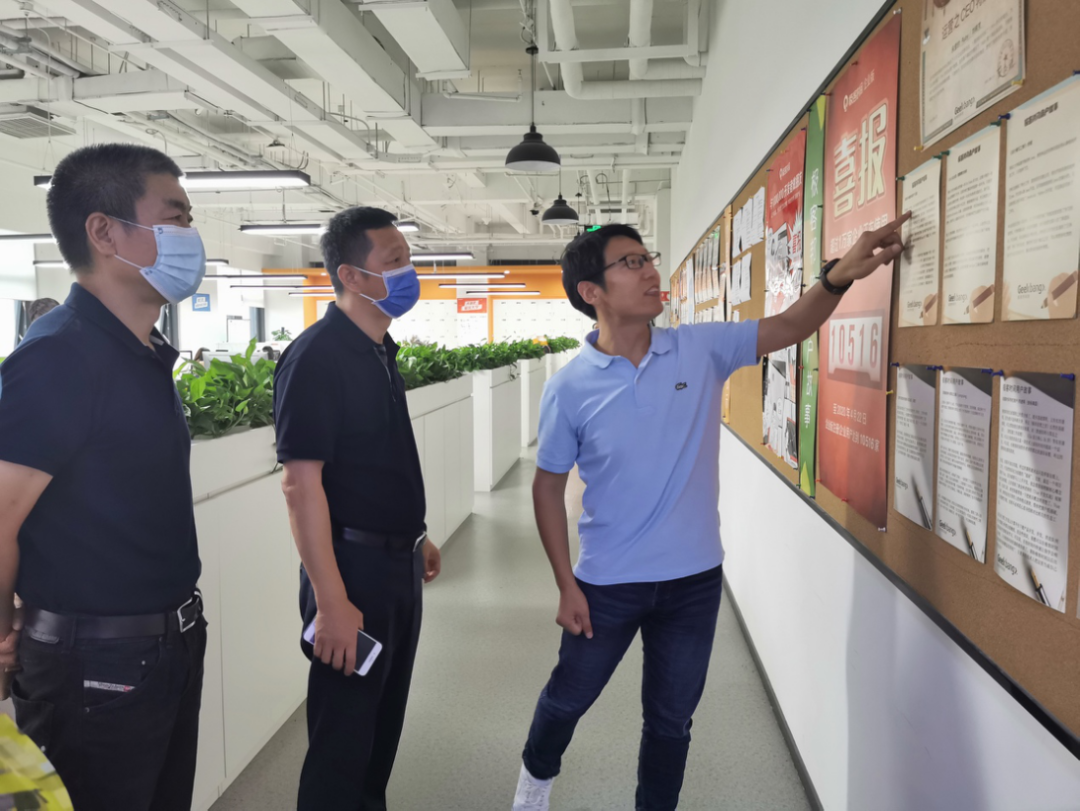 图二从左至右(右一)极客邦总经理霍泰稳给东湖街道商会(筹)拟任会长李贵生介绍公司展示墙 值得一提的是,在疫情期间,极客邦科技旗下的教育产品极客时间,免费为全国数万家企业的研发团队提供了丰富多彩而实践性强的课程,帮助大家提升 IT 方面的技能,助力企业在疫情期间稳步发展,与需要帮助的企业携手并进,共克时艰。 据霍泰稳还介绍了,目前极客邦科技党支部的成立也在紧张的筹备中,借此机会,向来访的各位企业家、党委领导做了详细汇报。并且经叶青大厦党委慎重决定,在习近平主席视察叶青大厦十周年之时,正式批准成立极客邦科技党支部。 企业的发展离不开国家大方向的引领,企业家的合作共赢离不开党委的凝聚。商会活动在叶青大厦党委支持下有条不紊的展开,相信在不久的将来这些民营企业家们将会向党和国家献上斐然的成绩。