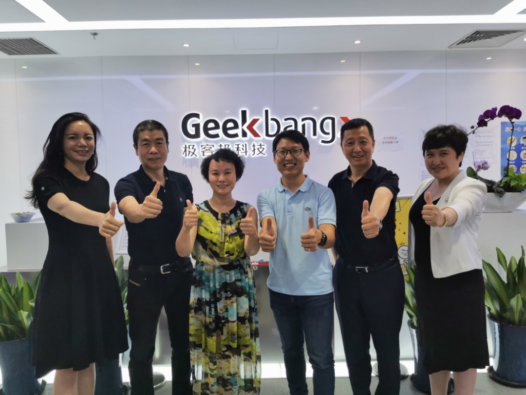 7月3日下午,朝阳区东湖街道商会(筹)的诸位企业家受邀来到北京极客邦科技有限公司学习交流,极客邦科技创始人兼 CEO 霍泰稳热情接待大家。 参加本次活动的领导有,爱知之星公司创始人兼CEO、朝阳区东湖街道商会(筹)拟任会长李贵生;叶氏企业集团党委副书记、商会拟任秘书长王进宏;北京车娃娃科技发展有限公司董事长、商会(筹)拟任副会长林霞;叶青大厦党委委员、叶青大厦妇联主席、北京汇丰盛和囯际贸易公司董事长王慧超;叶青大厦民建副主委、动向国际科技股份有限公司总经理杨庆丽。