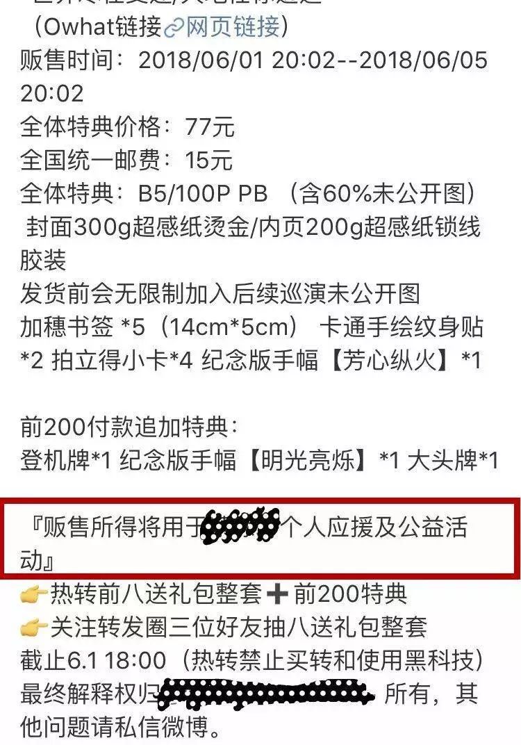 一种是线下演出的应援物。每当自家爱豆要参加音乐节、综艺节目录制、见面会等线下场合时,部分粉丝、站子、后援会会根据爱豆近期的照片进行设计,排版制作手幅、小卡、明信片等在场馆门口进行免费分发。对于粉丝来说,“无偿”地为爱豆制作应援物品,也是对偶像爱意的一种体现。当然,这种“分发”虽然是免费的,但需要满足一定的条件。“一般是要求微博超话超过一定的等级,杂志、代言、专辑的购买记录等等。”近期刚在演唱会现场发完手幅的小F告诉毒眸,在开始分发手幅的半小时内,就被满足条件的粉丝们“一抢而空”。
