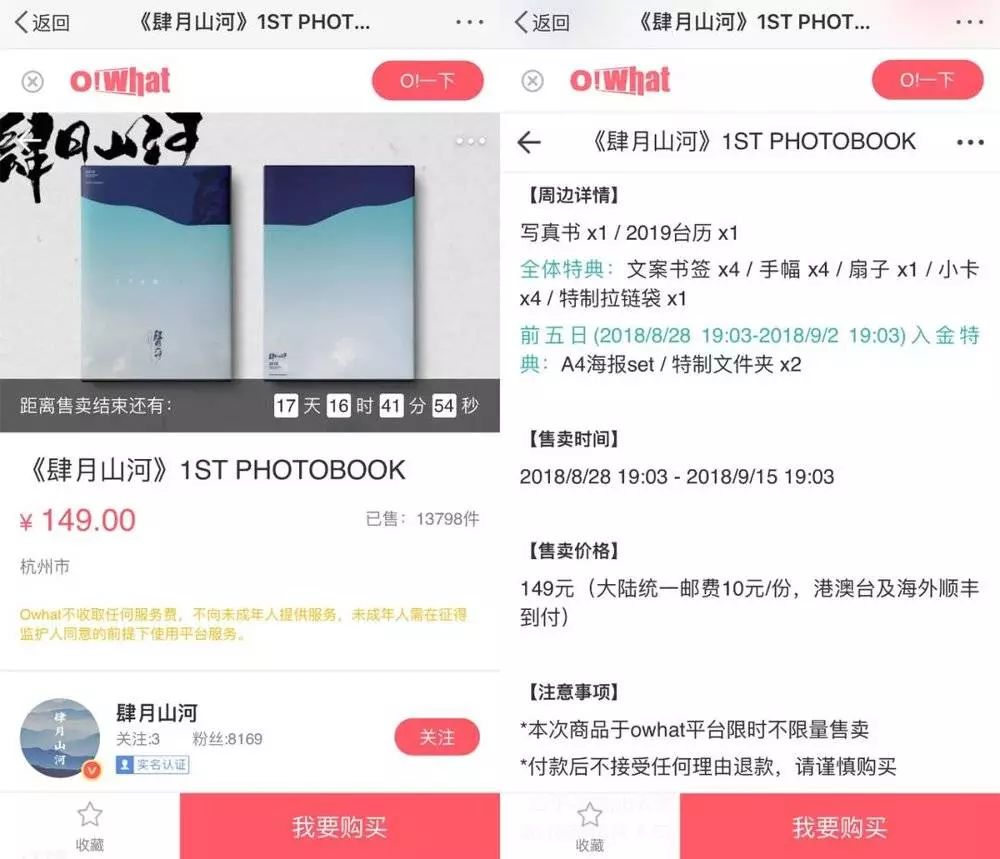 部分粉丝会将自己绘制的自家爱豆的Q版形象等,制作成徽章、贴纸、扇子等在线上贩卖。而也有不少站姐选择将自己拍到的图排版装订,制作成PB(photobook)在线上出售。去年暑期,网剧《镇魂》中白宇和朱一龙的粉丝站子“肆月山河”,就在不到一个小时出售超过上万份。虽然最终因为争议过大,肆月山河终止了这次的PB贩售,但149元一本、不到一小时收成近150万元的营收仍然让人咂舌。