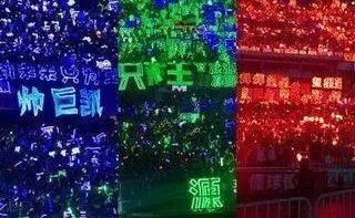 而线下应援物的“重头戏”,是演唱会、大型晚会等线下演出时满场闪烁的灯牌。灯牌一般由粉丝后援会和淘宝卖家谈判砍价,再组织粉丝统一购买,或是收取押金免费租借给去看演出的粉丝。
