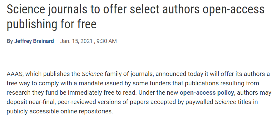 https://www.sciencemag.org/news/2021/01/science-journals-offer-select-authors-open-access-publishing-free
