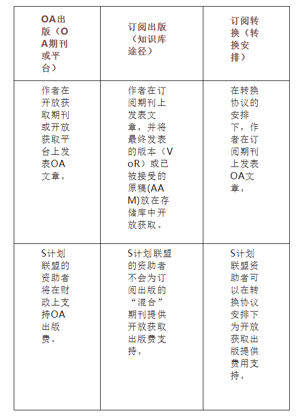 此外,该计划还明确了实现全面立即开放获取的三条合规路径,S 计划的资助者将为其中的一些发表形式提供财政支持: