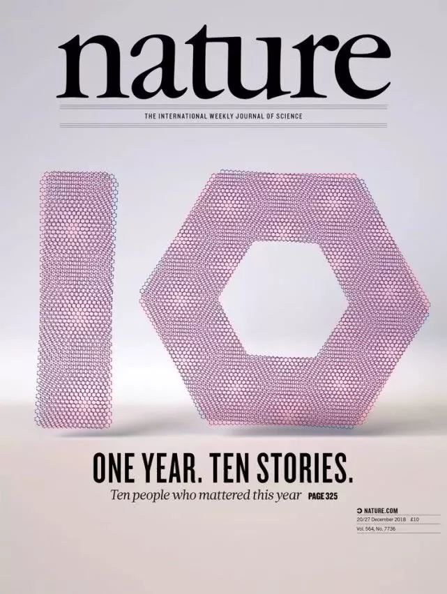 每年《自然》十大人物的封面图片都是一个巨大的数字“10”,具体样式和底纹都会融入当年的科技热点进行设计,今年的封面图片明显指向曹原的成果。