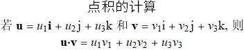 空间中两个向量的点积(或内积, 数量积)以对平面向量同样的方式定义. 当把两个非零向量 u 和 v 的起点放在一起, 就形成一个大小 0<=θ<=π 的角.