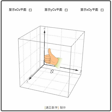 为给空间的点定位, 需要由三条相互垂直的轴. 如下图所示轴组成右手坐标系