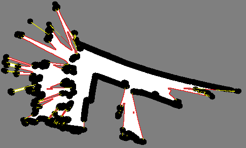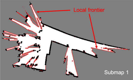 图2:子地图是由多个连续激光扫描组成的子图,红点是在子图上检测到的局部边界。