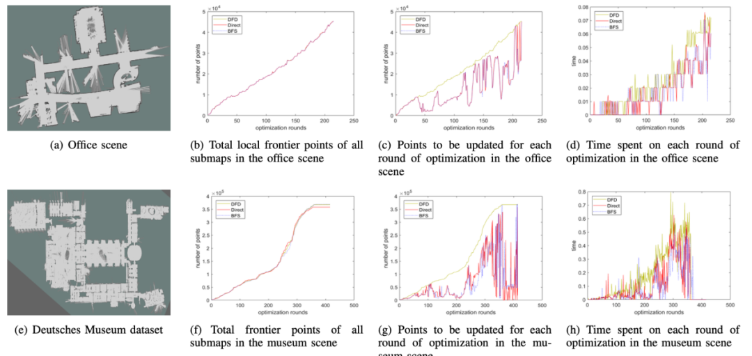 论文利用Cartographer方法作为基础SLAM模块创建子图并在由图优化引起的几何共对齐子图中执行有效的边界检测,提出一种主动勘探的集成方法。作者还对边界及其集群的可达性进行分析,以确保机器人可以到达检测到的边界。方法在真实室内场景的移动机器人上进行测试,以证明方法的有效性和效率。