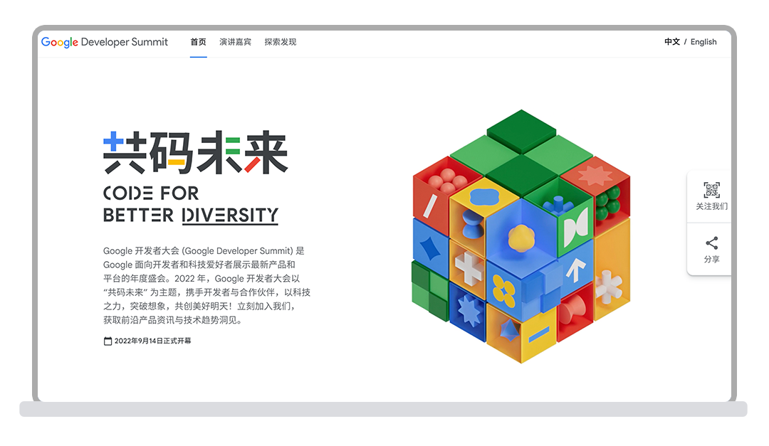 9 月 14 日大会主旨演讲闪亮登场,24 个产品线和话题最新动态,80+ 个技术专题演讲向开发者全面在线开放。你可以第一时间获取谷歌开发工具和技术的更新资讯,了解丰富前沿案例与资源,助力你开发实践更高效,迸发更多创新灵感,共同以科技之力构建美好未来。届时来到线下的朋友们也可以随心挑选感兴趣的演讲或座谈会,现场聆听学习。