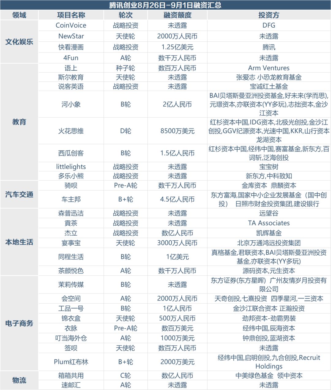 创投周报是腾讯创业推出的一个融资全收录栏目,我们将搜罗汇总每周融资动态,用最简洁明快的方式呈现给你。