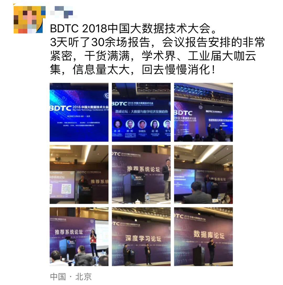 最后,附上部分与会者的评价,感谢大家的支持,明年的 BDTC 大会再见!