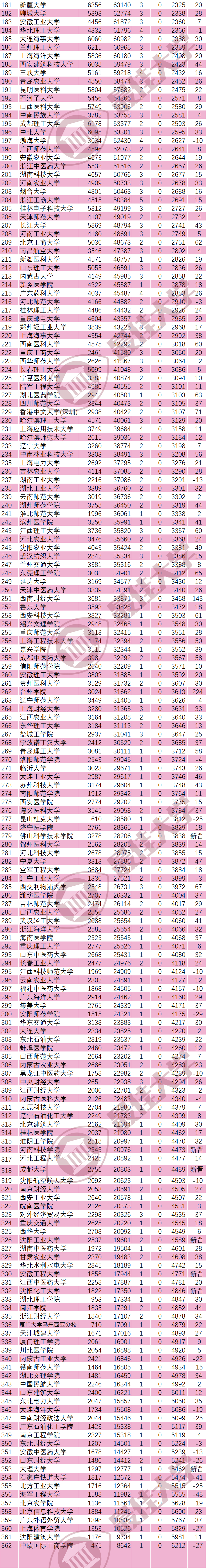 、郑州大学(12)、重庆大学(11)、电子科技大学(10)、武汉理工大学(10)进步均超过10名
