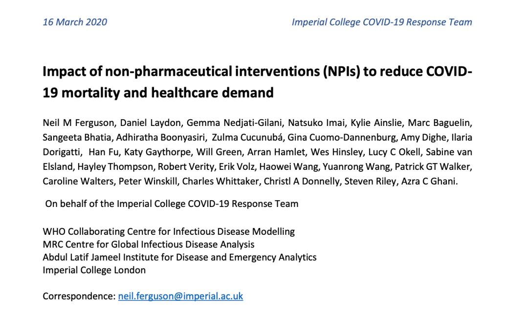 英国帝国理工大学COVID-2019应对小组的研究人员在近日发表的这篇论文中认为,前提是与1918年爆发的H1N1大流感类似,在没有疫苗和特效药的情况下,人类只能先采取非药物干预措施(NPIs),来减缓病毒的传播。